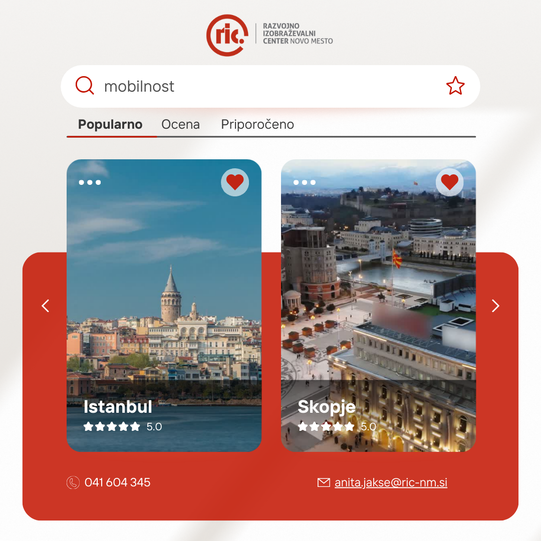 V letu 2026 ponujamo 2 mobilnosti v tujini (za vsako izberemo 2 udeleženca/udeleženki):