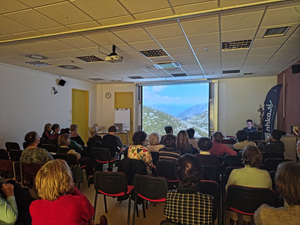Tega srečanja smo se veselili, saj je med nami veliko ljubiteljev planin in gor. Kar 32 članov Četrtkovih srečanj Univerze za starejše RIC Novo mesto je ta pot osrečila, saj so svoja doživetja lahko doživljali drugače. Naš gost David Stegu, profesor angleščine je tudi avtor dveh knjig V objemu dežele in Zakaj pa ne? Verjetno je tudi v obeh knjigah veliko modrosti, ki so ga vodile po teh poteh.