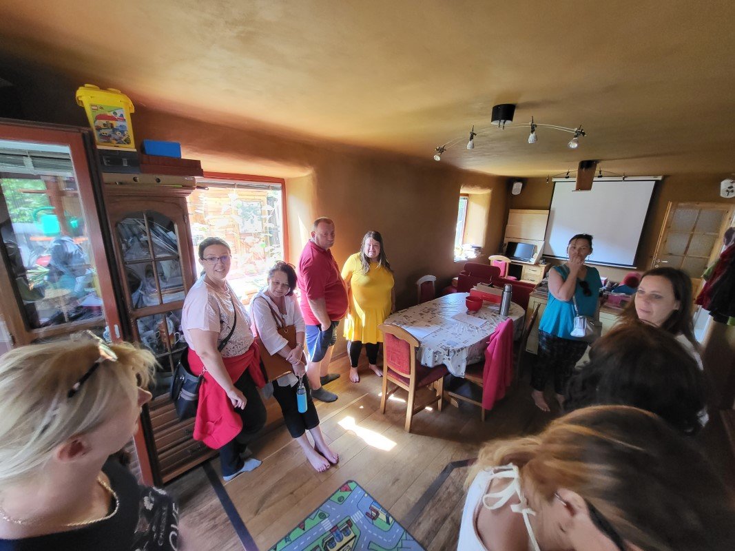 V torek, 30. 5. 2023 nas je pot peljala v Šentjernej, na posestvo Nova zemlja, kjer sta nas prijazno sprejela Janja in Andrej Brečko. Razkazala sta nam svoje samooskrbno posestvo, hišo in druge objekte, zgrajene iz naravnih in recikliranih materialov. Podučila sta nas, kako narediti rastlinjak. Ogledali smo si njun samooskrbni zelenjavni, sadni in zeliščni vrt ter energetske točke in krog. Poleg tega sta sproti razlagala o skrbi za rastline, živali in okolje, da res lahko svoje vrtičkanje naravnamo na čimbolj samooskrbno in naravi prijazno. Z veseljem in brez pomisleka sta z nami delila tudi svoje sadike malin, špinače, zelišč.