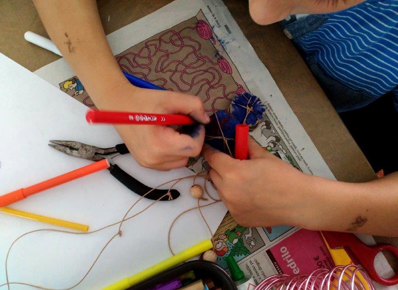 Otroci so med drugim ustvarjali lovilce sanj za poletne dni, poslikali naravne materiale, izdelovali blazinice prijateljstva iz blaga in dodatkov. S tkanjem so ustvarili različne uporabne izdelke, se preizkusili v izdelavi avtoportreta v sliki in besedi, napisali pravljico v knjigi, ki so jo sami izdelali. Odpadni material in druge predmete so uporabili za obeske osebne moči, iz žice in naravnih materialov izdelovali pravljični nakit, ob koncu meseca julija pa si naredili svojo družabno igro in se jo tudi igrali.