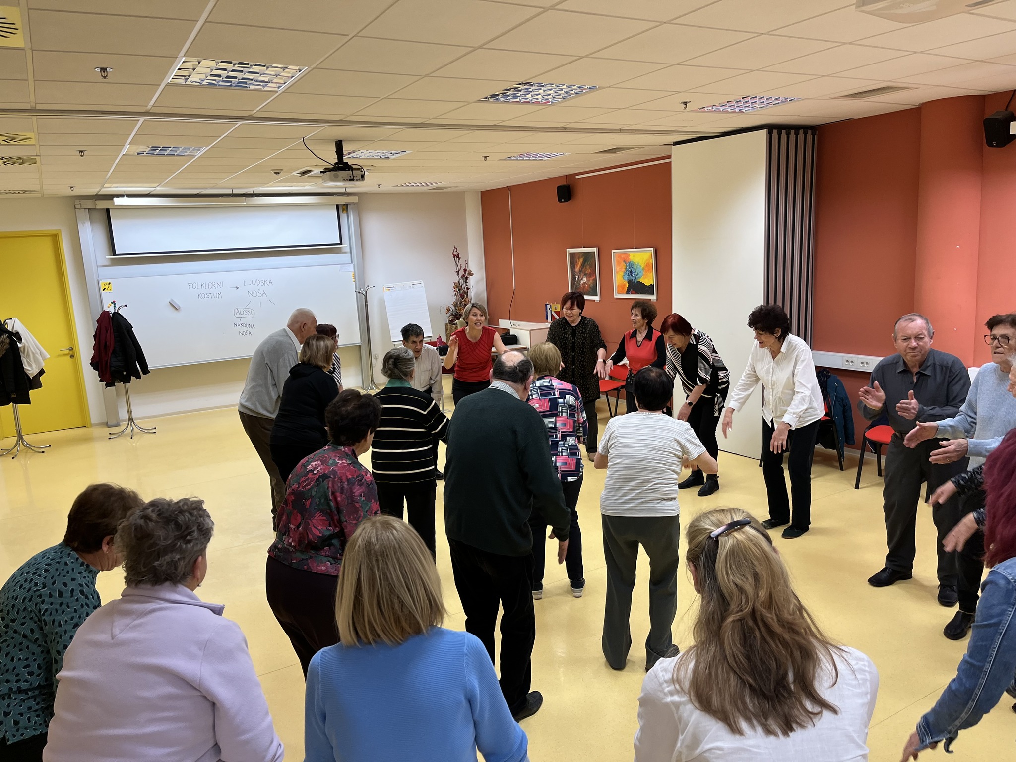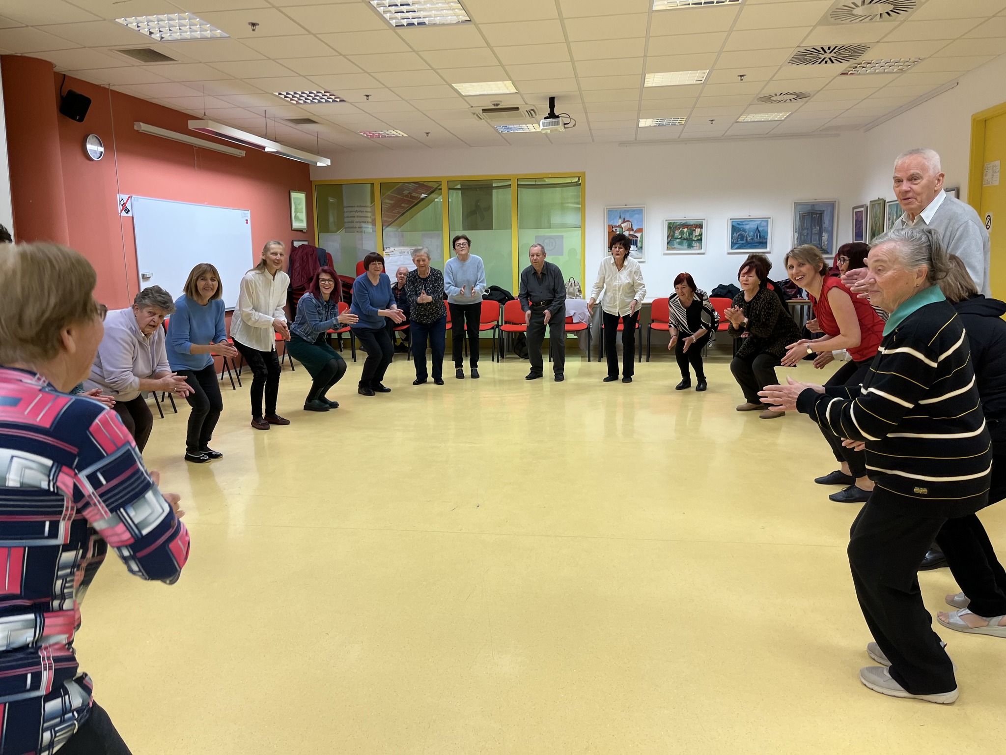 Poleg tega je veliko ustvarjalnih delavnic, jezikovnih tečajev, vsak teden ples narave kar dvakrat. Veselimo se novih srečanj s Petro Nograšek s plesi in ljudsko glasbo, saj v nas zbudi otroka in se igramo, plešemo skupaj.