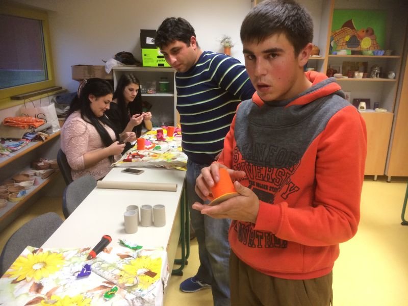 Zopet smo rezali, oblikovali, primerjali, lepili … Kartonasti tulci, filc in lepilo so bili materiali, s katerimi smo ustvarjali. Nastala so simpatična stojala za svinčnike, ki bodo krasila mizice naših otrok. Podarili jih bomo svojim otrokom za Božička. Zasnovali pa smo tudi vabila za Božička za otroke.