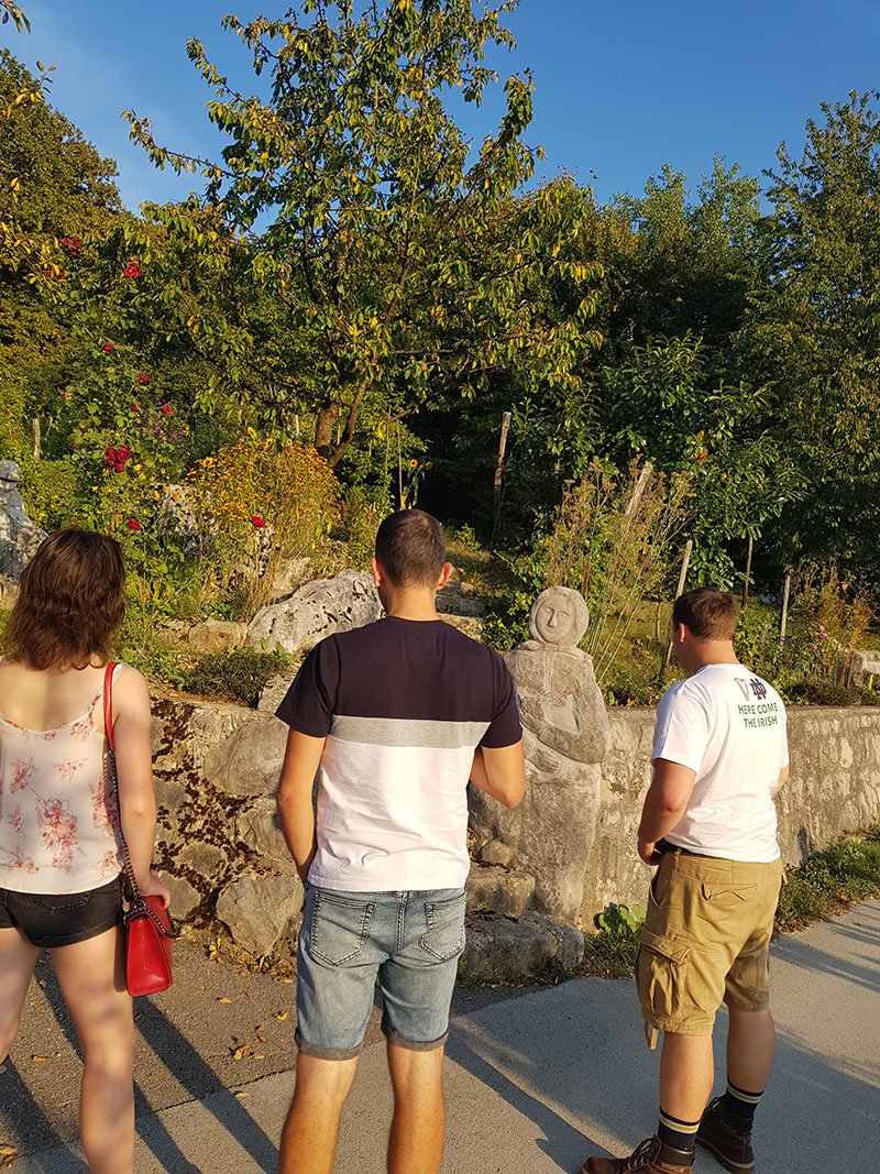 V torek, 14. 9. 2021 smo imeli še zadnjo delavnico študijskega krožka Tradicionalna obrt. Mojster Alojz nam je predstavil kamnoseštvo. Kamnoseštvo je plod oblikovanja grobih kamnov v natančne geometrijske oblike. Tudi sam Alojz jih je oblikoval veliko: kamnito uro, žabo, grozdje, podobe oseb ...