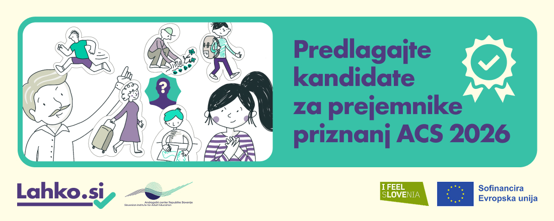 Z veseljem sporočamo, da je razpis za priznanja Andragoškega centra Slovenije (ACS) odprt! Do 3. novembra 2025 lahko prijavite posameznike, skupine ali ustanove, ki s svojo predanostjo, ustvarjalnostjo in odločnostjo na področju vseživljenjskega učenja širijo obzorja, premikajo meje in navdihujejo druge.