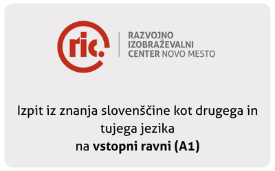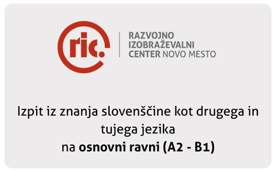 V sodelovanju s Centrom za slovenščino kot drugi in tuji jezik (Oddelek za slovenistiko Filozofske fakultete Univerze v Ljubljani) izvajamo izpite iz znanja slovenščine na vstopni ravni in osnovni ravni po javno veljavnem izobraževalnem programu Slovenščina kot drugi in tuji jezik. Izpiti so namenjeni vsem, ki potrebujejo javno veljavno listino o znanju slovenščine za uradne namene (na primer za delo, za pridobitev slovenskega državljanstva).